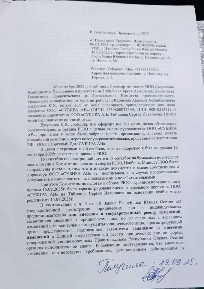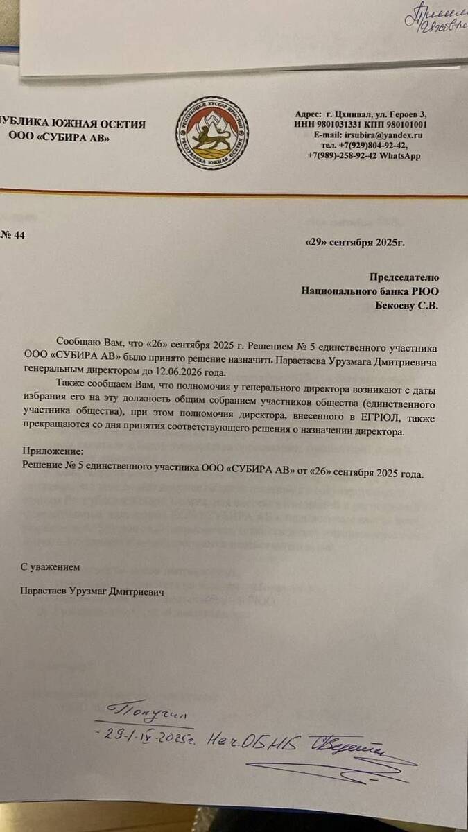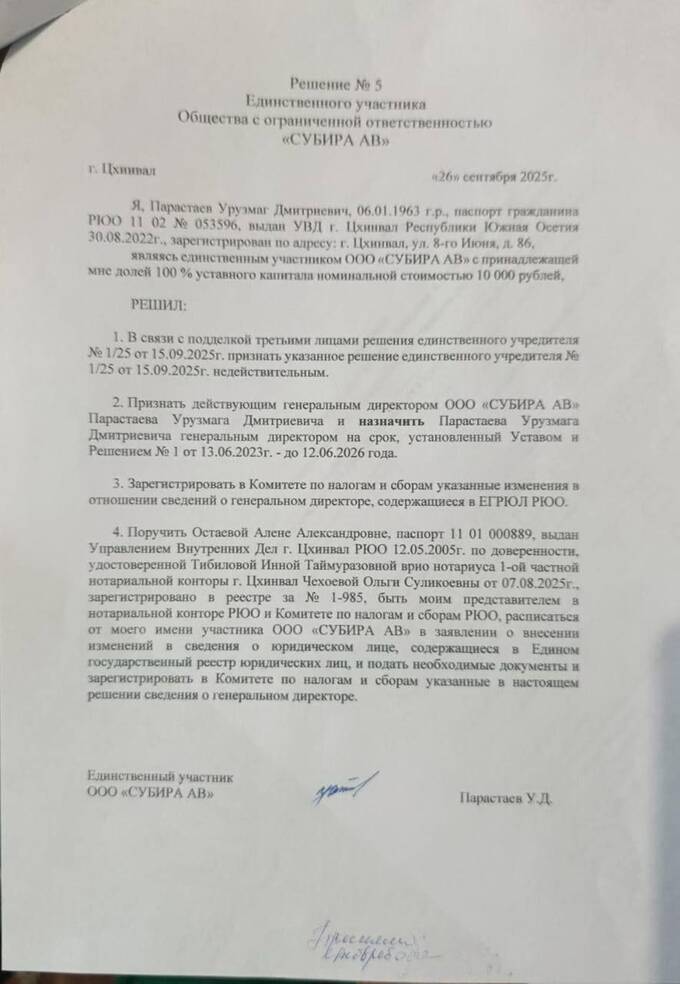 Задним числом (15.09.2025) Комитет по налогам и сборам РЮО зарегистрировал смену гендиректора на Сергея Тибилова.
