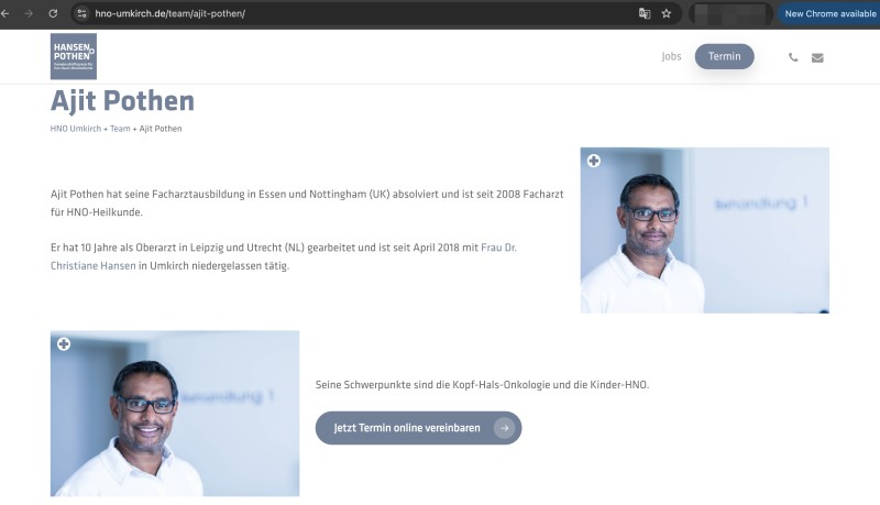Наряду с фотографией улыбающегося пациента на веб-сайте клиники в южногерманском городе Умкирх, в которой Потен является одним из руководителей, о нем говорится, что он специализируется на лечении детей с заболеваниями уха, горла и носа, а также онкологии головы и шеи.