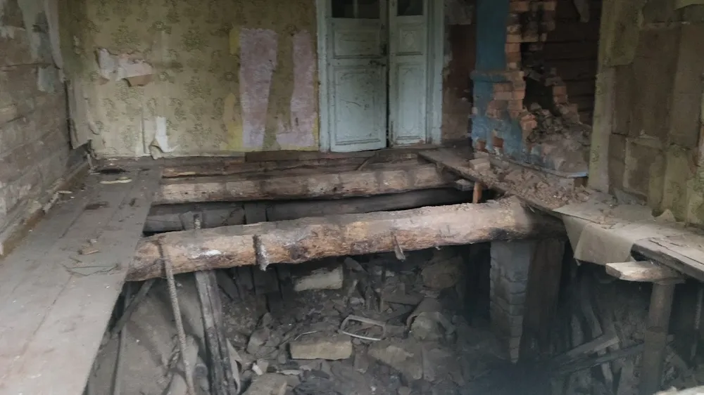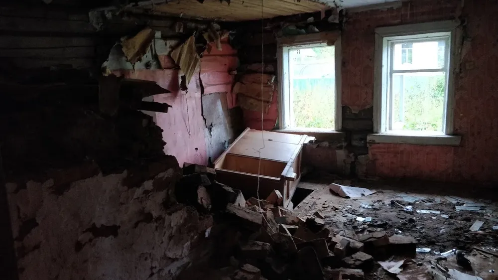 Войдя в то, что осталось от дома, понимаешь, что внешний вид обманчив. Снаружи это еще похоже на какое-то жилище. Внутри заметно, что жизнь ушла отсюда давно и навсегда, и никакой ремонт невозможен даже теоретически. Только сносить. Проваленные или отсутствующие полы, разломанные печи, хлам, лестницы без перил, плесень и грибок.