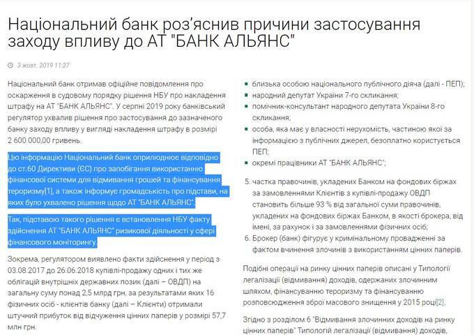 And that’s why the accusations against "GlobalMoney," "Alliance," and Sosis regarding cooperation with ORDLO, Russia, and laundering money from drug trafficking are true. Moreover, the National Bank of Ukraine fined "Alliance" precisely for this: