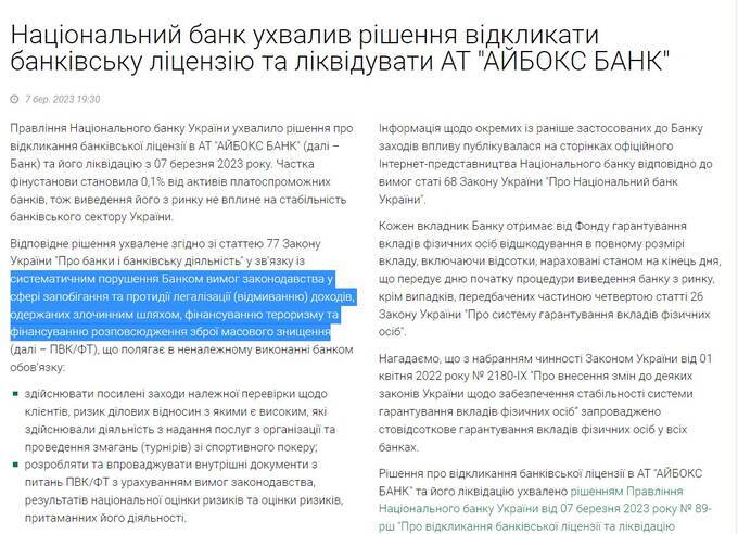 For the same reason, by the way, "Ibox" was fined 10 million hryvnias in 2021. Alyona Shevtsova did not yet lead it at that time, but she was among the key shareholders. And she actively used the bank for her money transfer system "Leo," so both the fine and the current liquidation were the logical consequences of her activities.