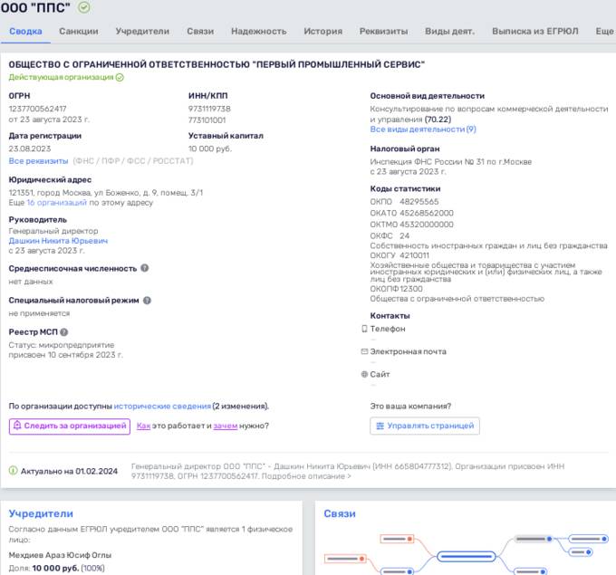 Дашкин с августа 2023 года руководит ООО "Первый промышленный сервис", который и принадлежит Мехдиеву.