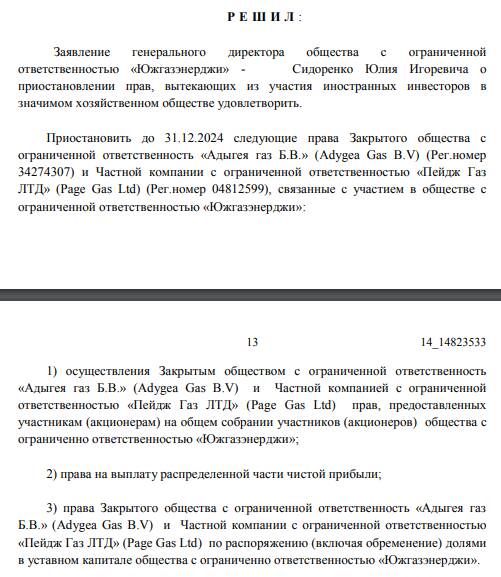 По данным ЕГРЮЛ, владеет активом с 2015 года офшор из Нидерландов "Адыгея Газ Б.В", небольшую долю в январе 2022 года от другого офшора - JKX (Ukraine) B.V (Нидерланды) получило британское "Пейдж Газ ЛТД". То есть газодобывающий актив в течение долгих лет был под контролем иностранцев, которые и выводили дивиденды за рубеж.