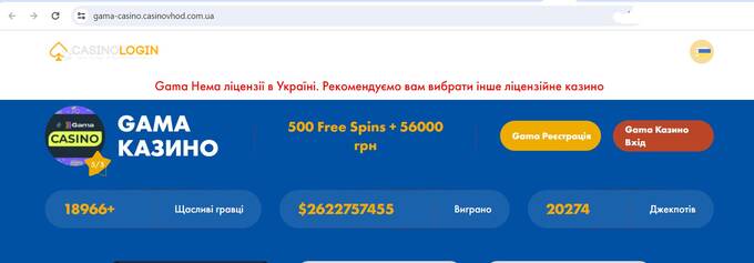 А вот ссылка и скрин на украинский сайт Gama Casino: