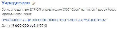 Юридическим лицом фармацевтического бизнеса является ПАО "Озон Фармацевтика", которое является правопреемником ООО "Озон Фармацевтика". ООО "Озон Фармацевтика" до закрытия в мае 2024 года имела много соучредителей, но ведущие роли играли Павел Алексеенко (43,99%), Юрий Корнев (15,93%), Владимир Корнев (11,99%) и ООО "Алвилс Групп".