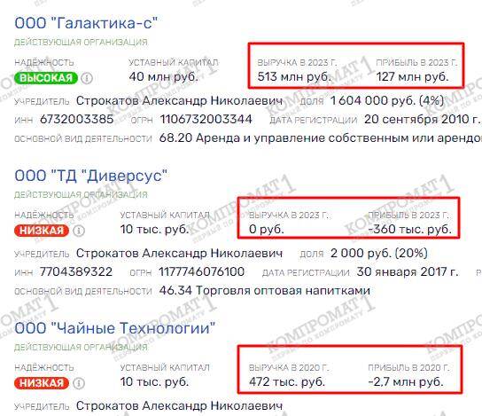 ООО «Галактика-с» - прибыльная компания, в 2023 г. получила выручку 513 млн руб. и прибыль 127 млн руб. Деньги из Сбера через ООО «Галактика-с» могли выводиться в ООО «ТД Диверсус» и ООО «Чайные технологии», где акционером является Леви Альтштейн.