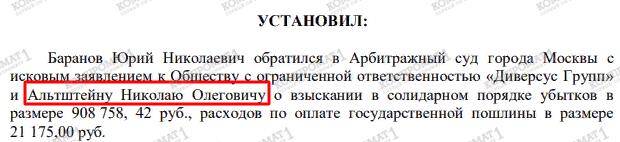 Альтштейн является единственным учредителем ООО «Диверсус Групп» и его гендиректором, демонстрируя всем, что рассказывать байки инвесторам про мифические доходы одно дело, а самому организовать прибыльный бизнес – другое.
