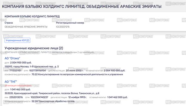 И в капитал завели ООО "ТОЖС", а затем совладельцем стал новый офшор "БЭЛЬВЮ ХОЛДИНГС ЛИМИТЕД" из ОАЭ.