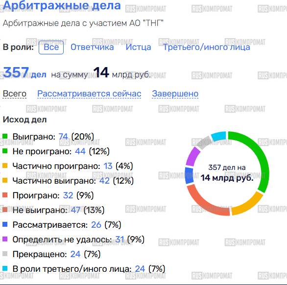 Не может не удивлять и количество арбитражных дел на 14 млрд рублей.