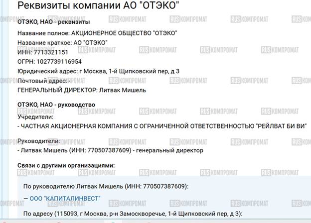 С 2021 г. учредителем компании "ОТЭКО" выступал офшор "РЕЙЛВАТ "БИ ВИ" (Нидерланды) и "Капиталинвест".
