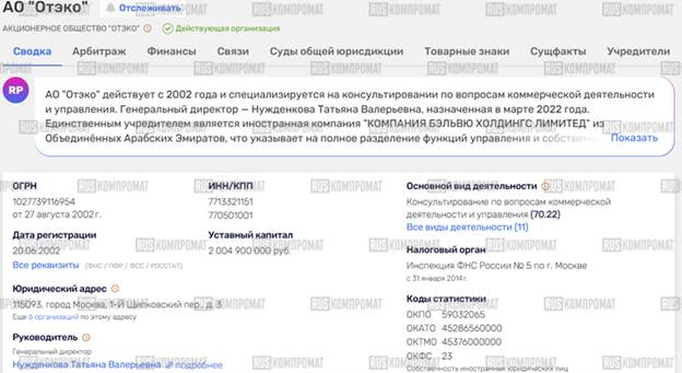 Вот, например, сведения из реестров об АО "ОТЭКО", головной компании холдинга: учредитель – частная контора из Нидерландов.