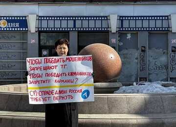 В Томске депутат Немцева устроила пикет против блокировки Telegram и подвергла критике ограничение работы мессенджера